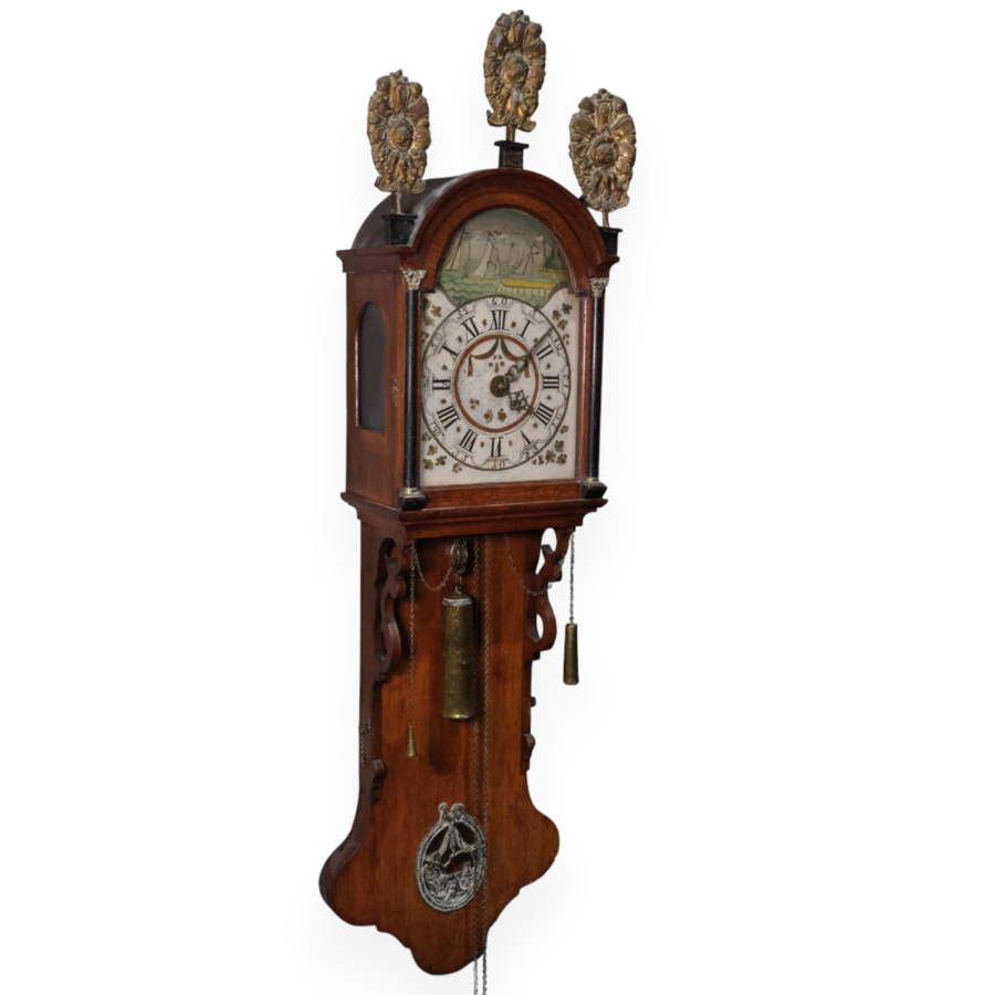 Antieke Friese staartklok met kwartierslag en maan- en datumaanduiding