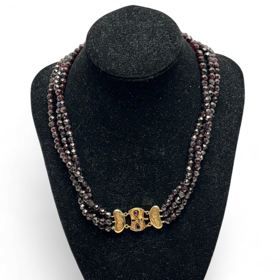 Vierstrengs granaten collier met gouden sluiting