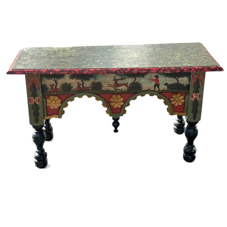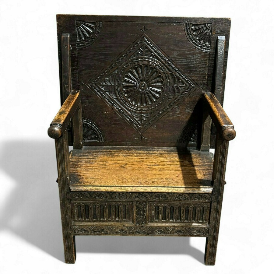 19e eeuwse Engelse eikenhouten bank & tafel