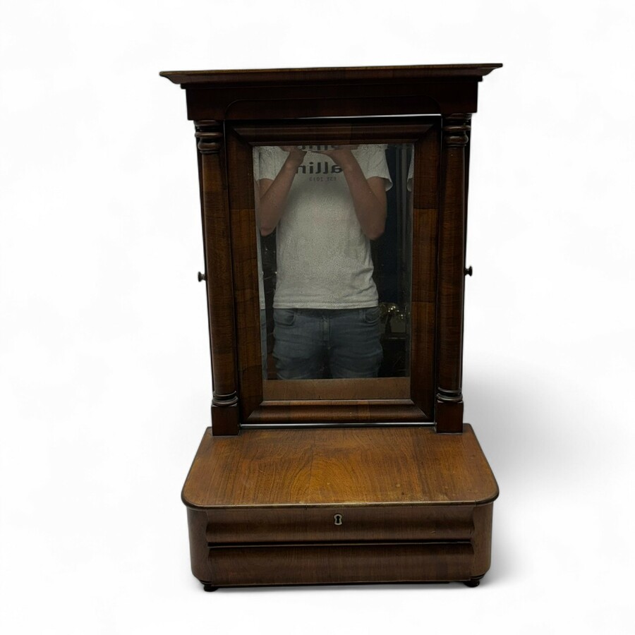 Antieke 19e eeuwse mahonie kapspiegel met laadjes