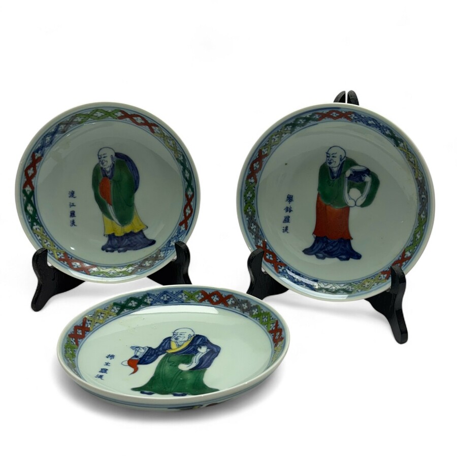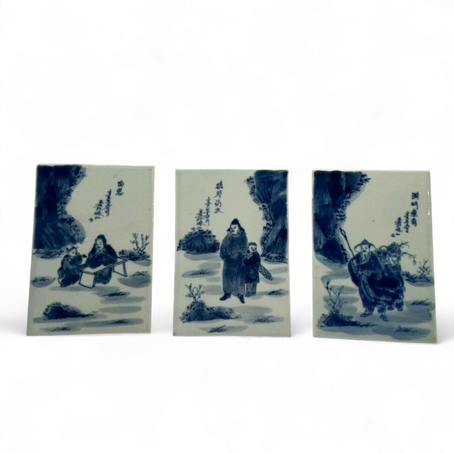 Drie antieke Chinees porseleinen plaquettes met decor van een "Scolar and Student".