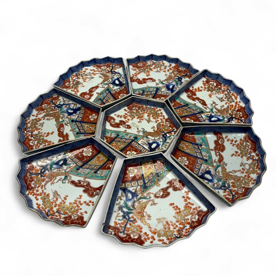 Een japans porseleinen achtdelige Imari sweetmeatset.