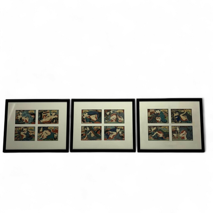 Twaalf 19e eeuwse Japans erotische houtsnedes