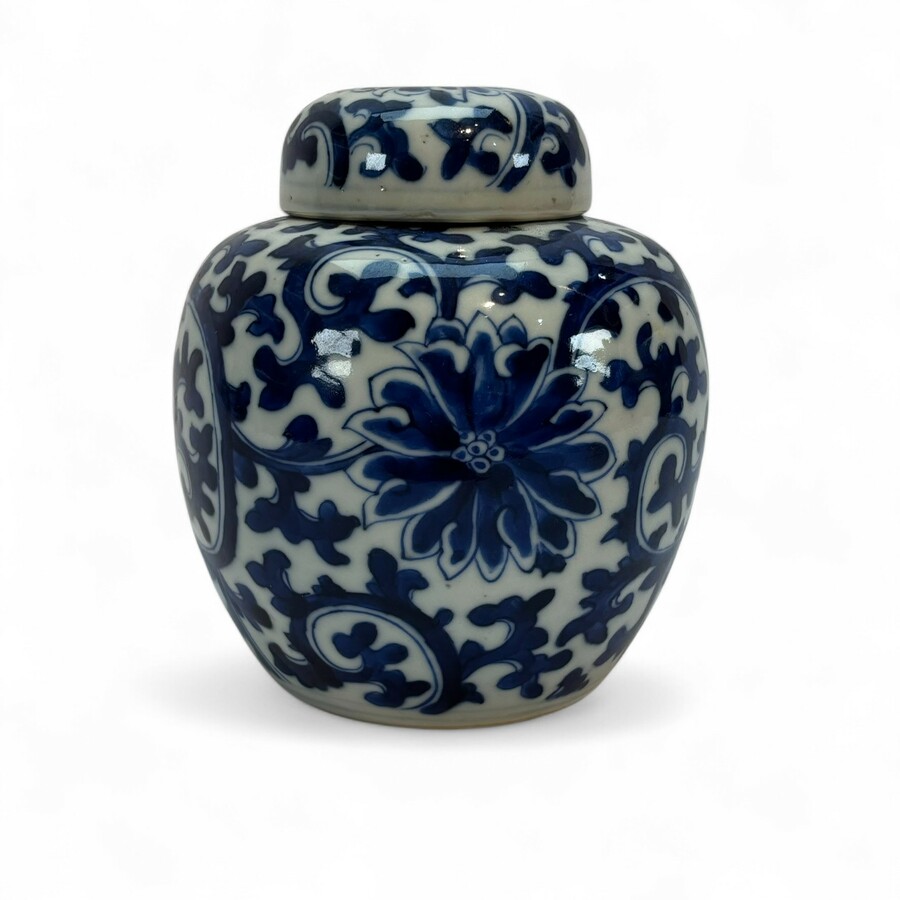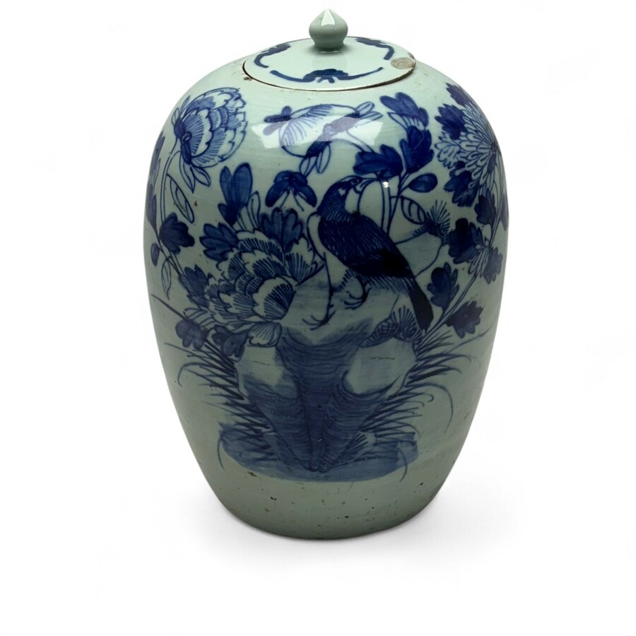 Een antieke Chinees porseleinen gemberpot met originele deksel.