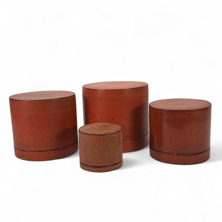 Vier lakwerken beteldozen, Myanmar