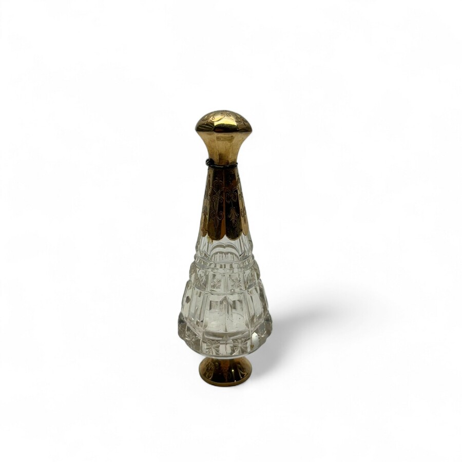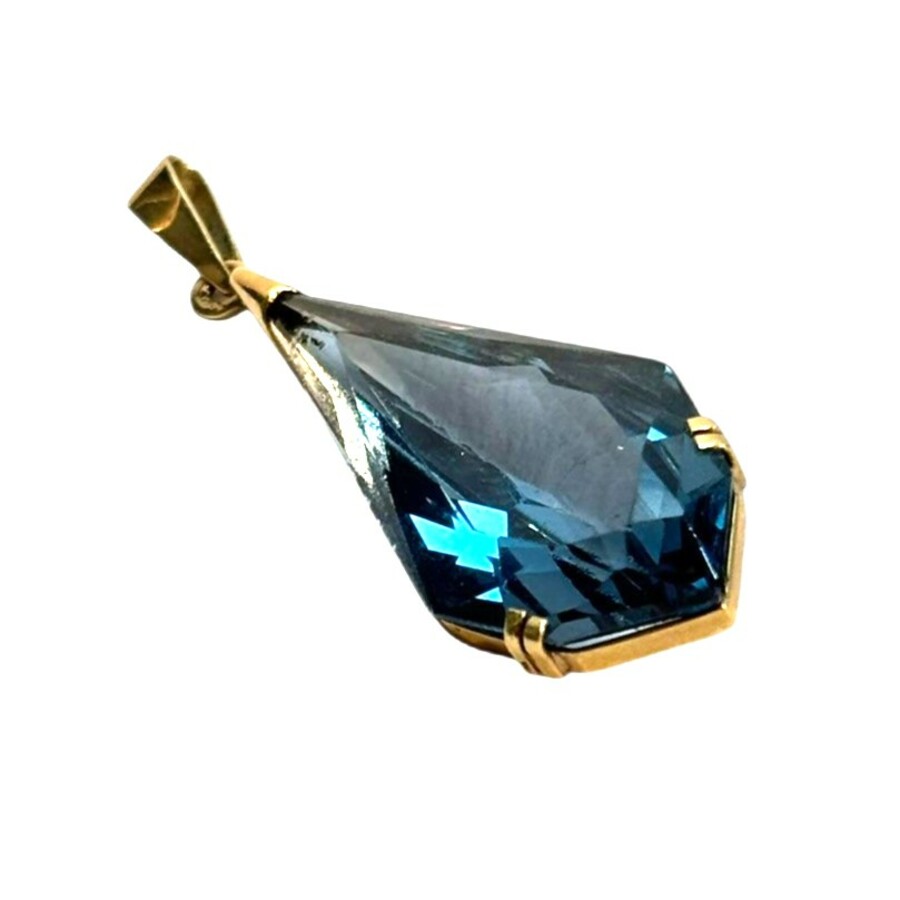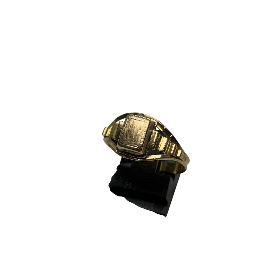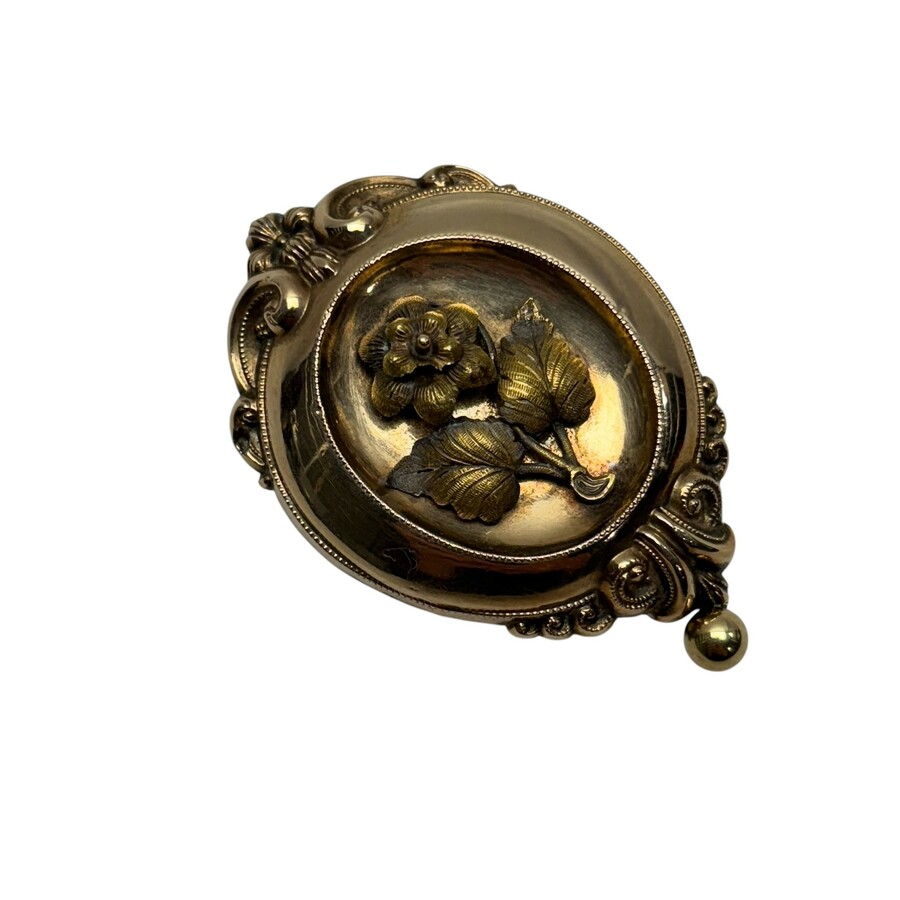 Een 9 krt gouden broche met cabuchon geslepen jadeiet