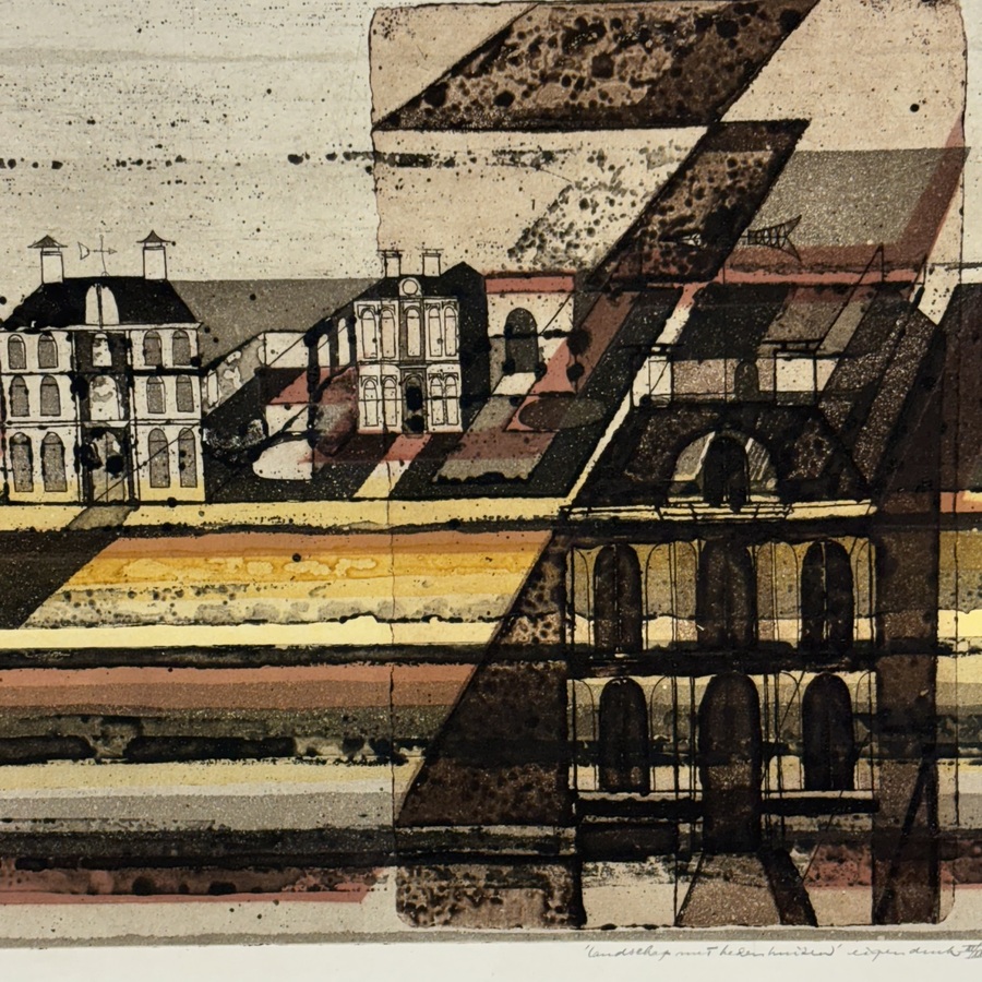 Anne Huitema (geb. 1941). Vier etsen: drie in kleur, en één in zwart-wit. Met moderne en abstracte voorstellingen.