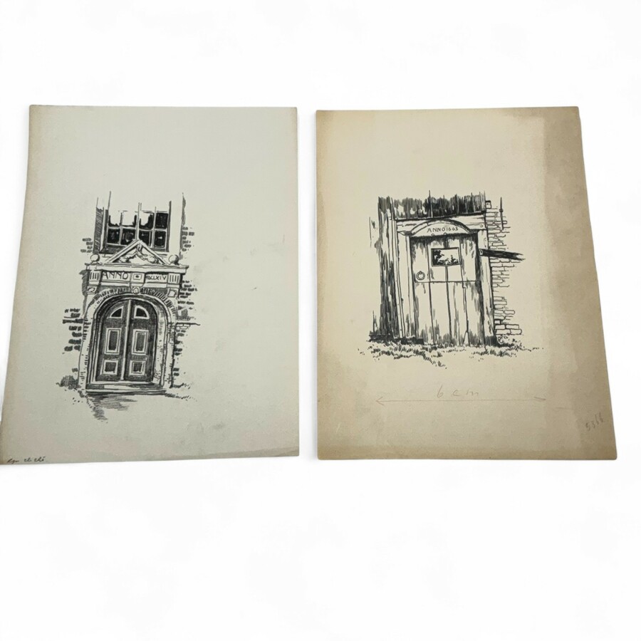 Bouke van der Sloot (1908-1995). Een houtskool tekeningen en een inkttekening. Twee deurposten.