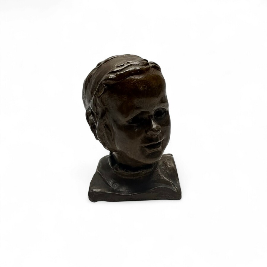 H. Hoyer. Een gepatineerd bronzen sculptuur van een meisjes kopje.