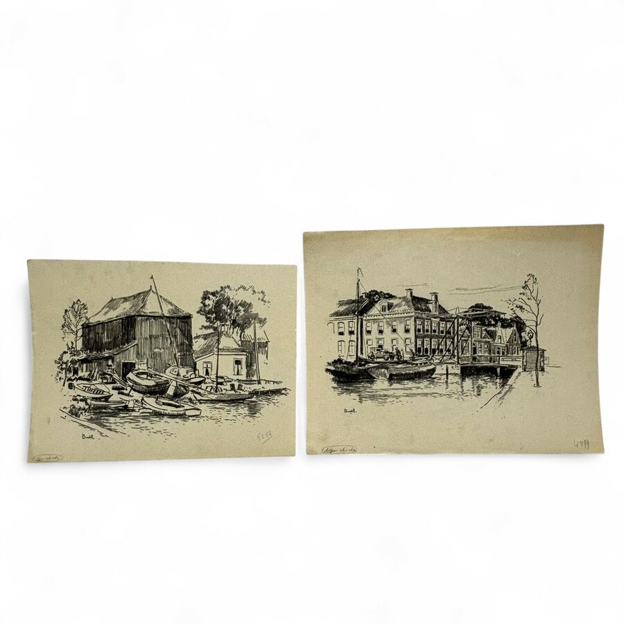 Bouke van der Sloot (1908-1995). Twee houtskool tekeningen Joure.