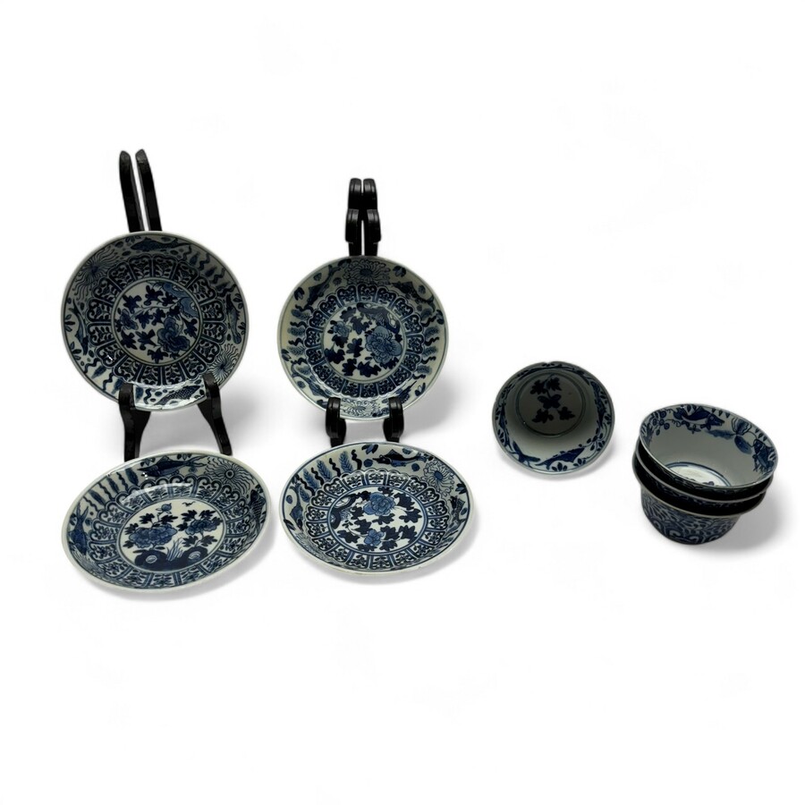 Vier Chinees porseleinen kop en schotels, 19e eeuw