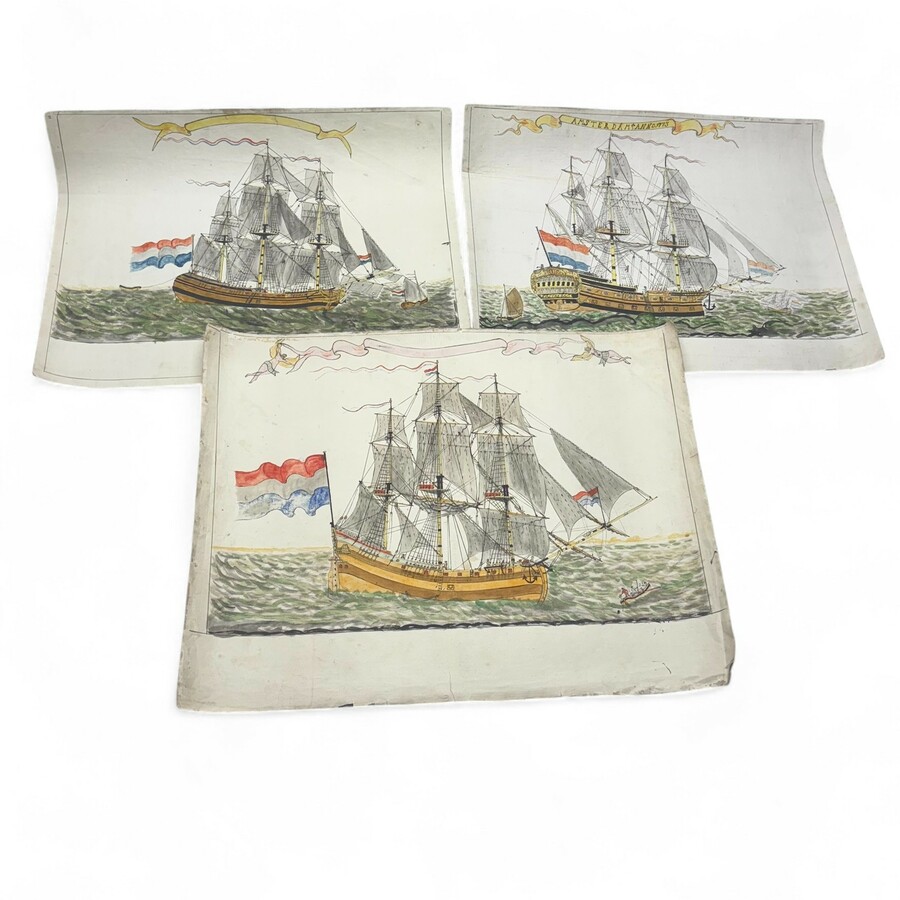 Drie 18e-eeuwse kindertekeningen: Hollandse schepen