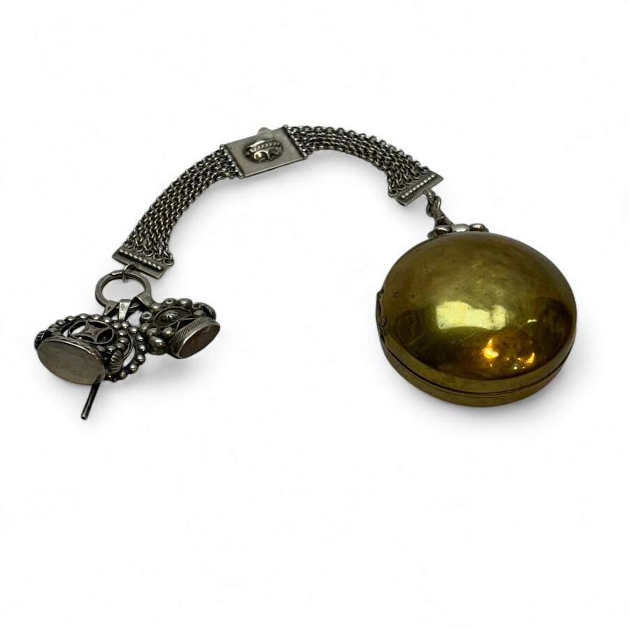 18e eeuws dubbel zilveren horloge aan zilveren chatelaine