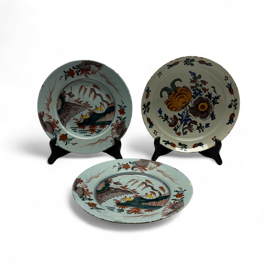 Drie antieke Delfts aardewerken schotels