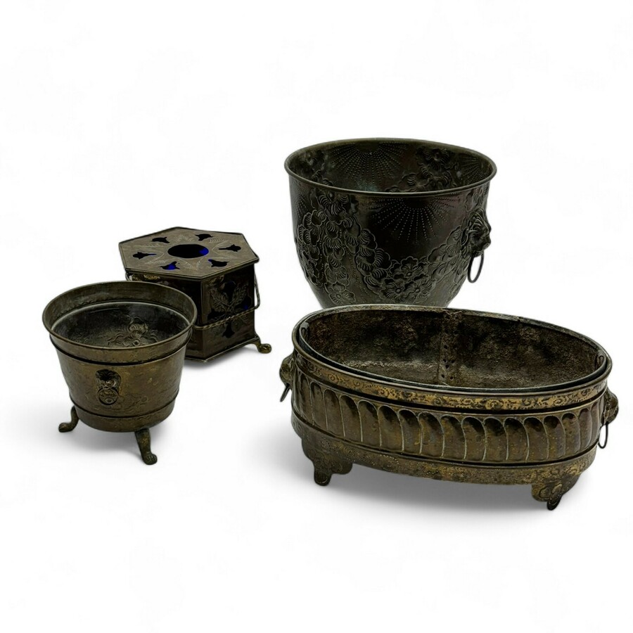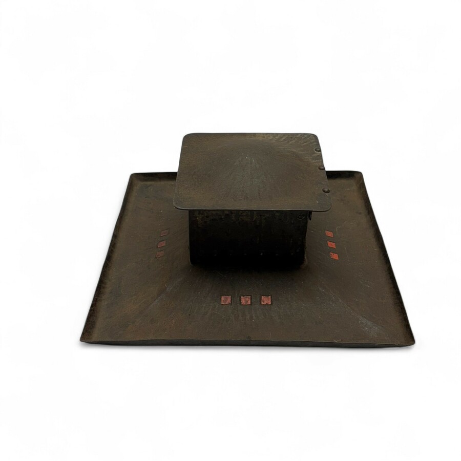 Een gehamerd metalen gepatineerd inkstel