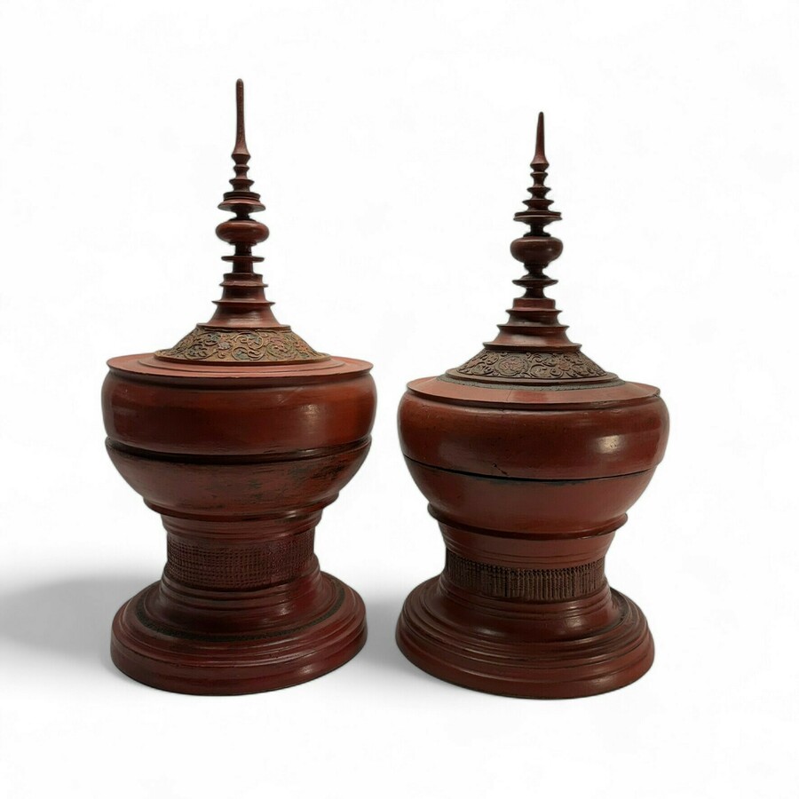 Paar Birmese offerschalen, 19e eeuws
