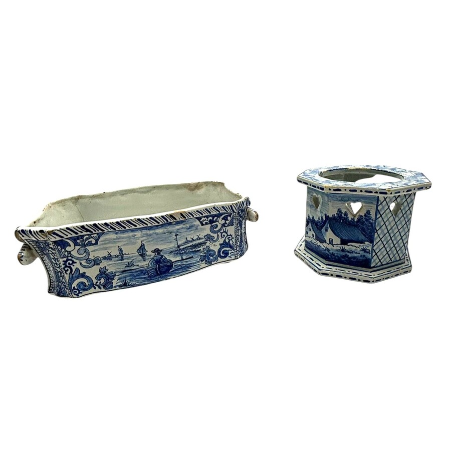 Twee stuks antiek Tichelaar, Makkum aardewerk.
