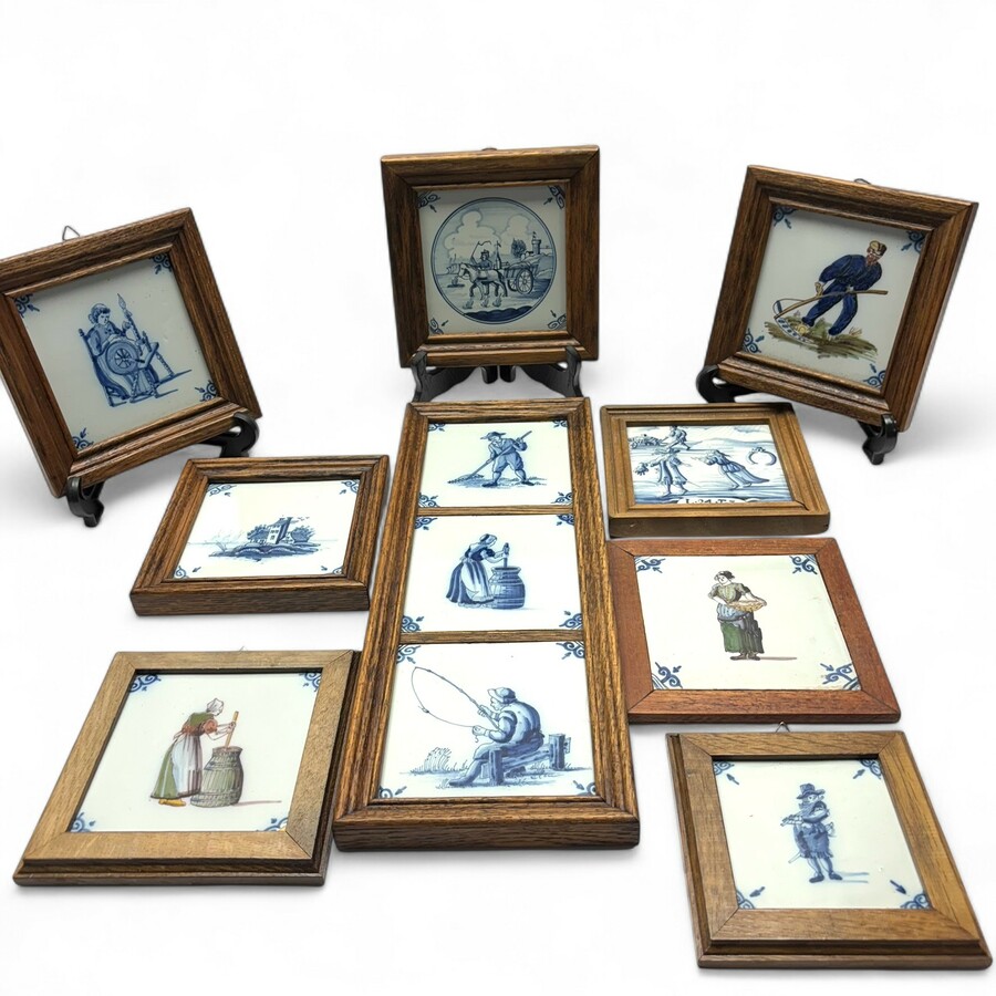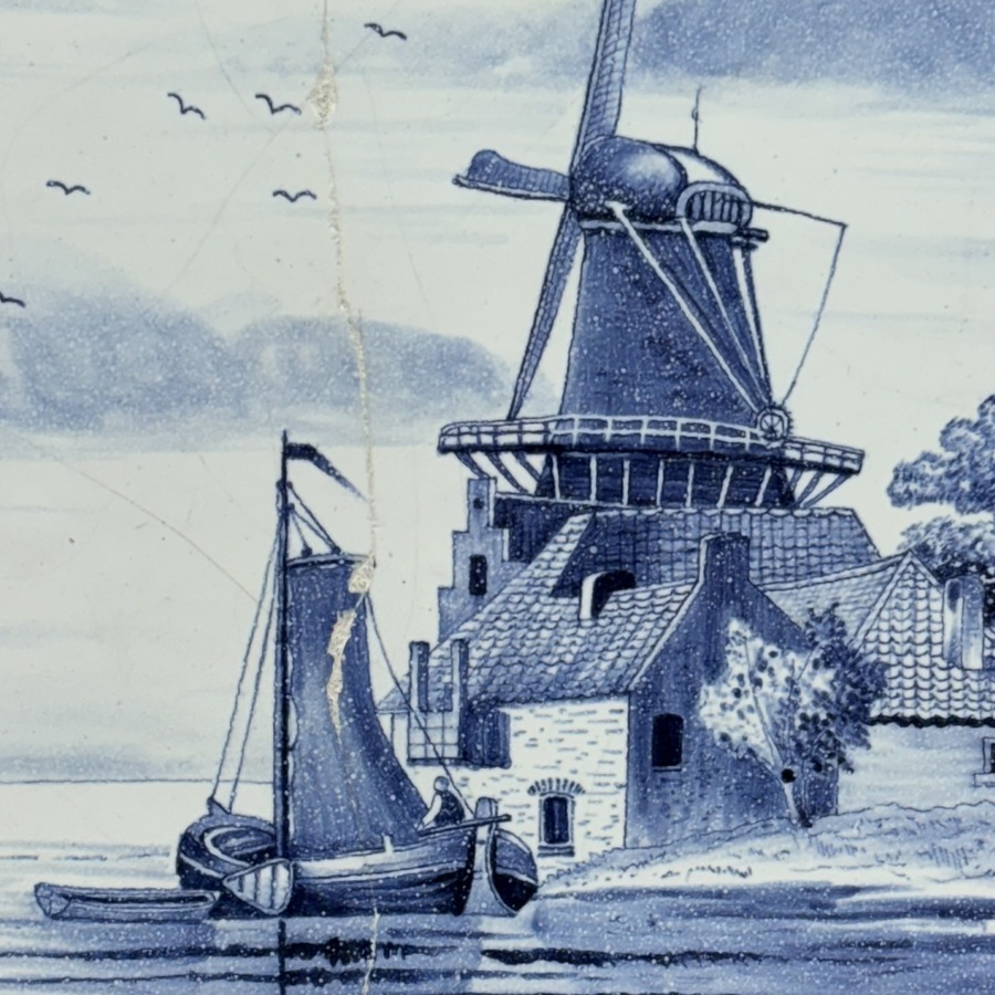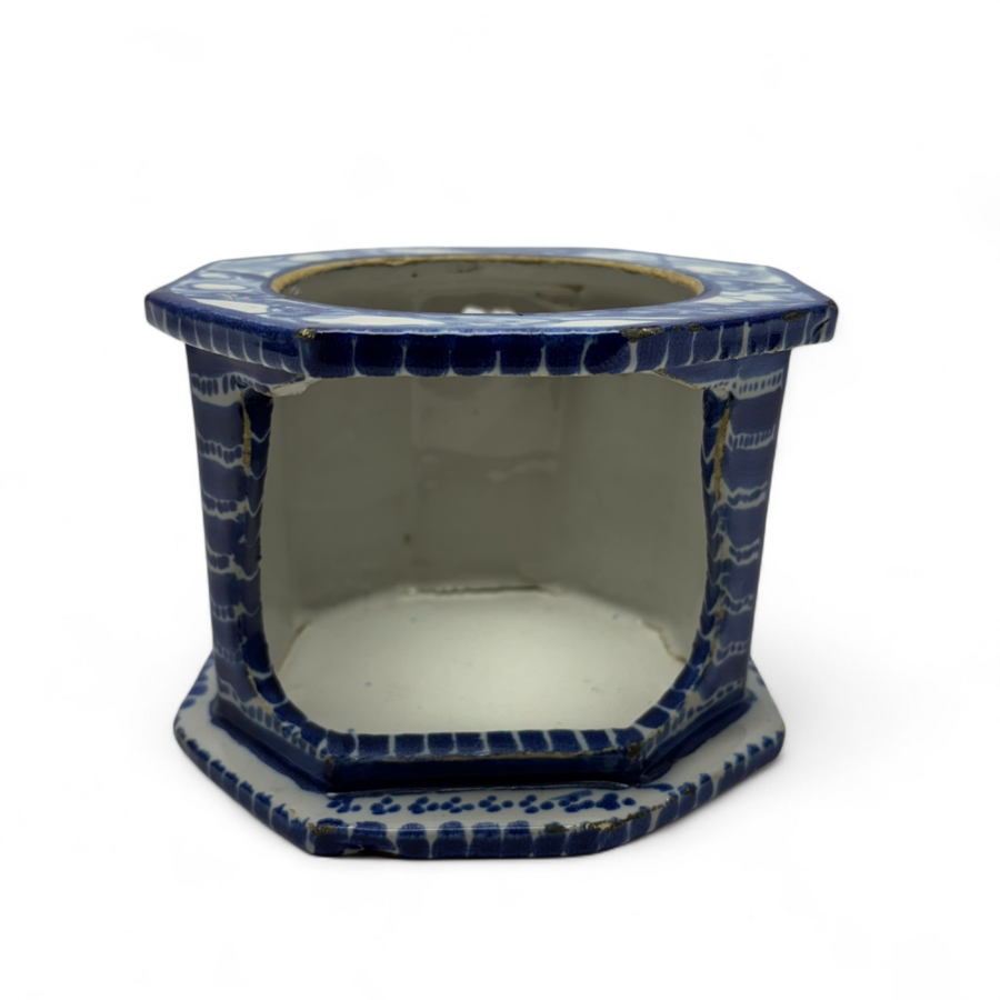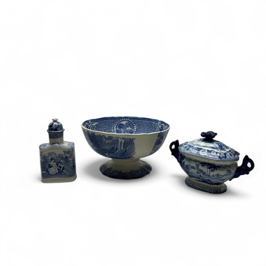 19e-eeuws aardewerk met blauw-wit transferdecor (3x)