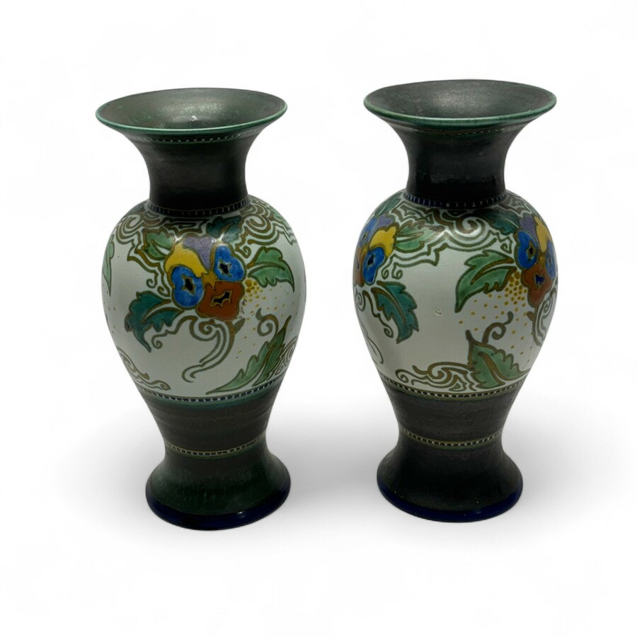 Twee platelen vazen, plateelbakkerij Zuid-Holland voor De Duif Den Dolder