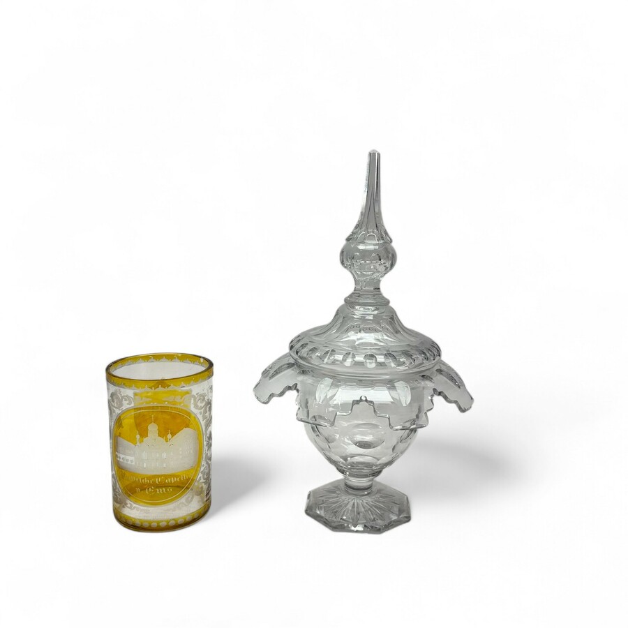 Een Boheems gegraveerde beker en een kristallen kandijcoupe