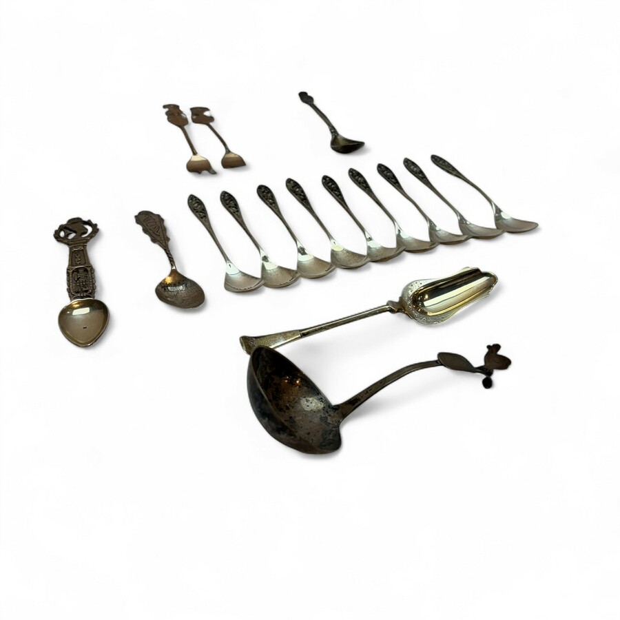 Lot met diverse waaronder diverse zilveren voorwerpen.