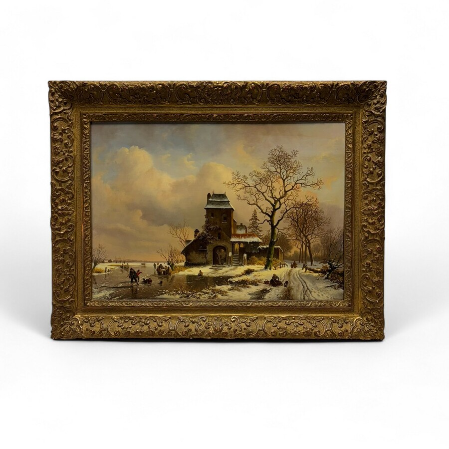 Schilderij, olieverf op paneel. Winterlandschap met diverse figuren. Rechtsonder gesigneerd Anton Karssen (1945-2019). In fraaie Heijdenrijk lijst.
