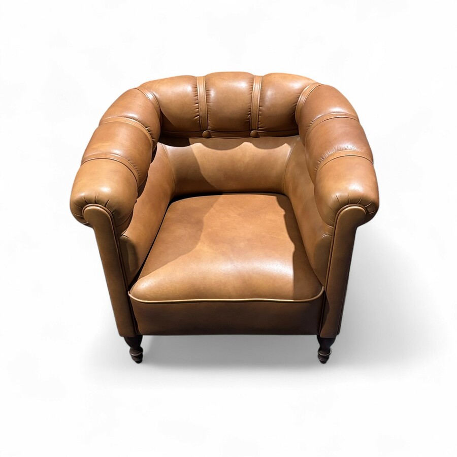 Een 20e eeuwse gecaptionneerde lederen clubfauteuil, Chesterton, op gedraaide houten pootjes.