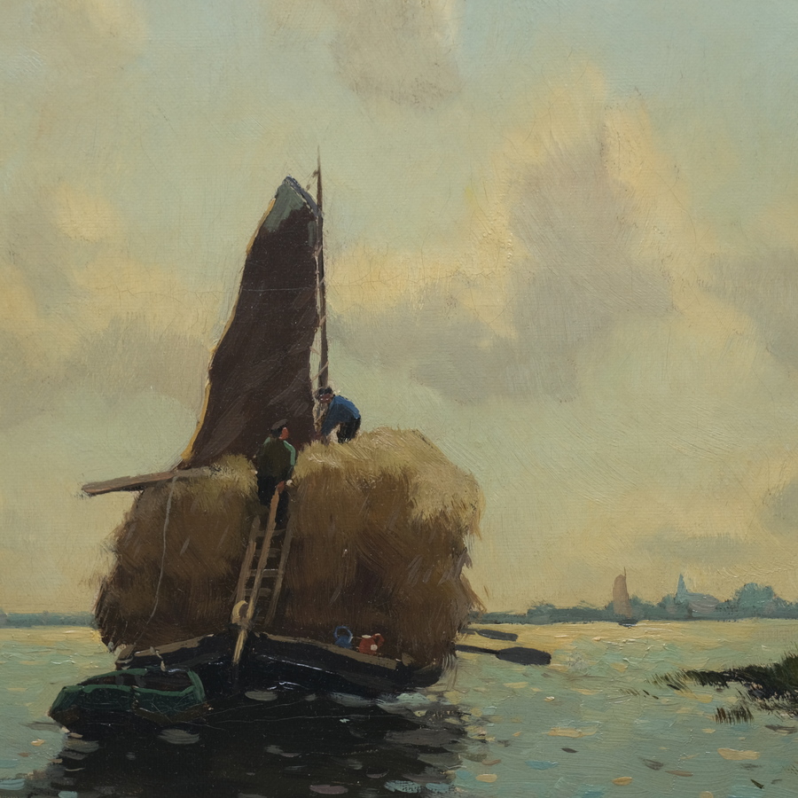 Schilderij, olieverf op doek. ‘Hooipraam’. Rechtsonder gesigneerd Egnatius Ydema (Wymbritseradiel 1876 – Voorburg 1937).