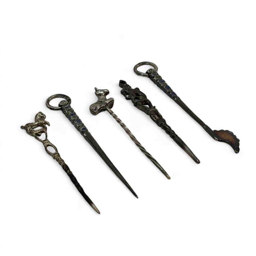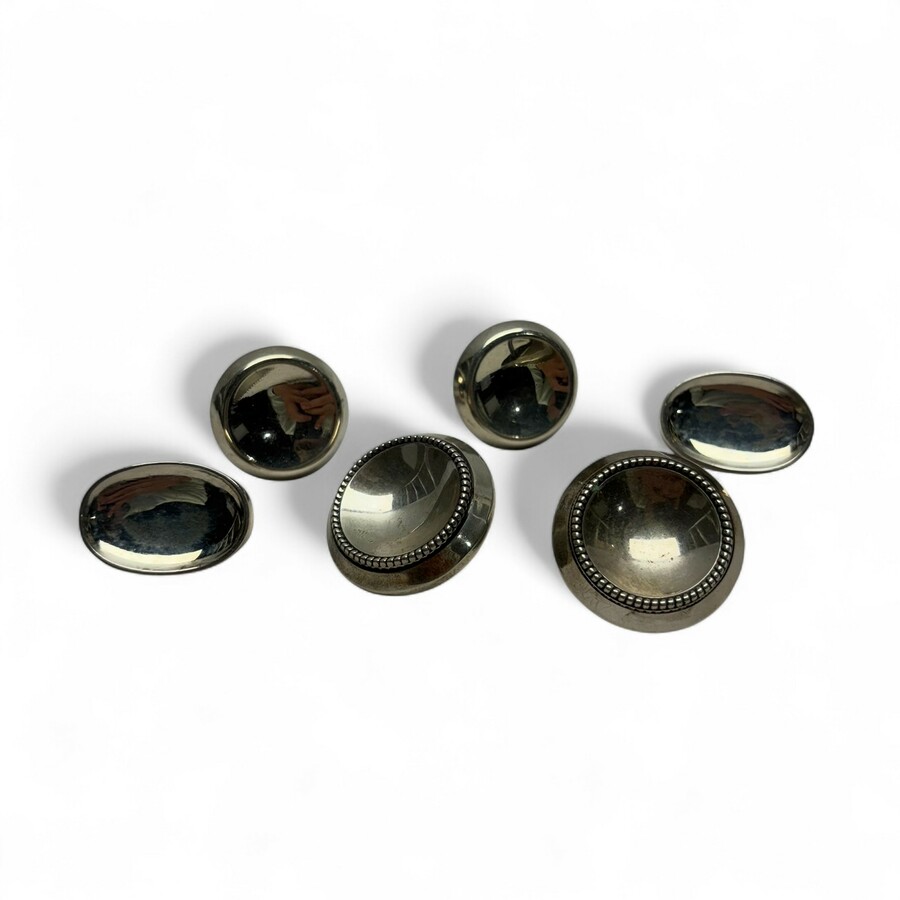 Twee paar antieke tweede gehalte zilveren kaasduimen en een paar verzilverde kaasduimen.