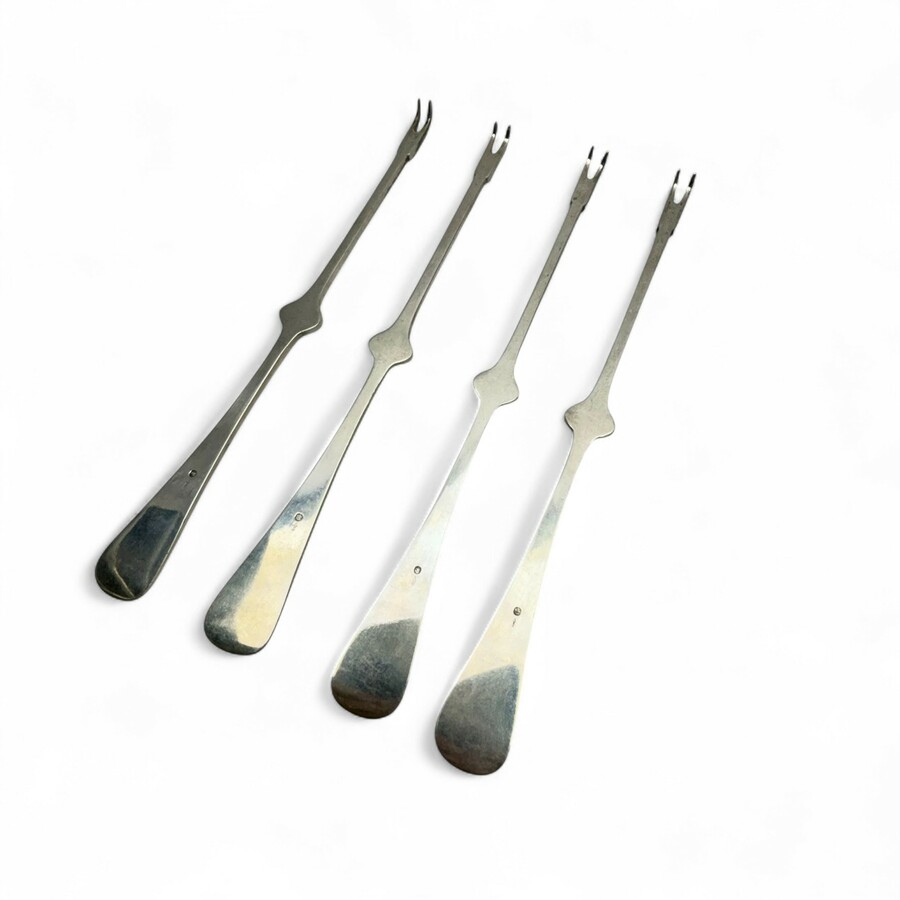 Vier tweede gehalte zilveren kreeftenvorkjes.