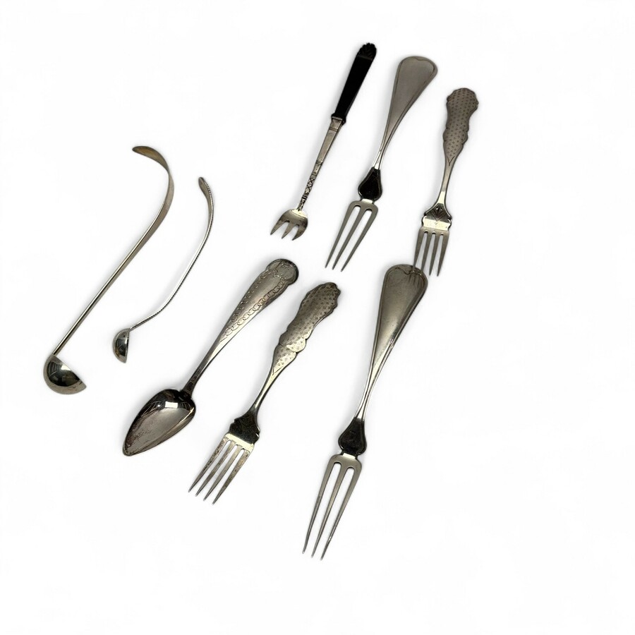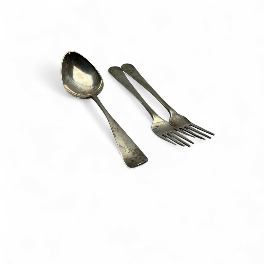 Twee zilveren vorken en lepel