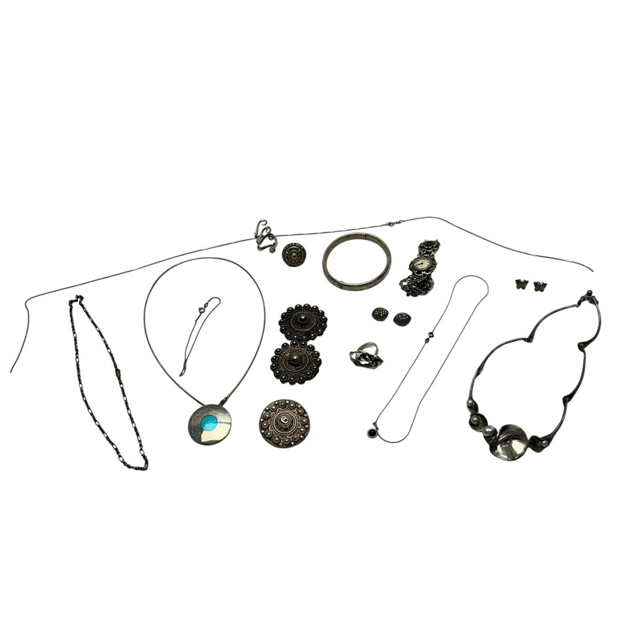 Lot diverse zilveren en verzilverde sieraden