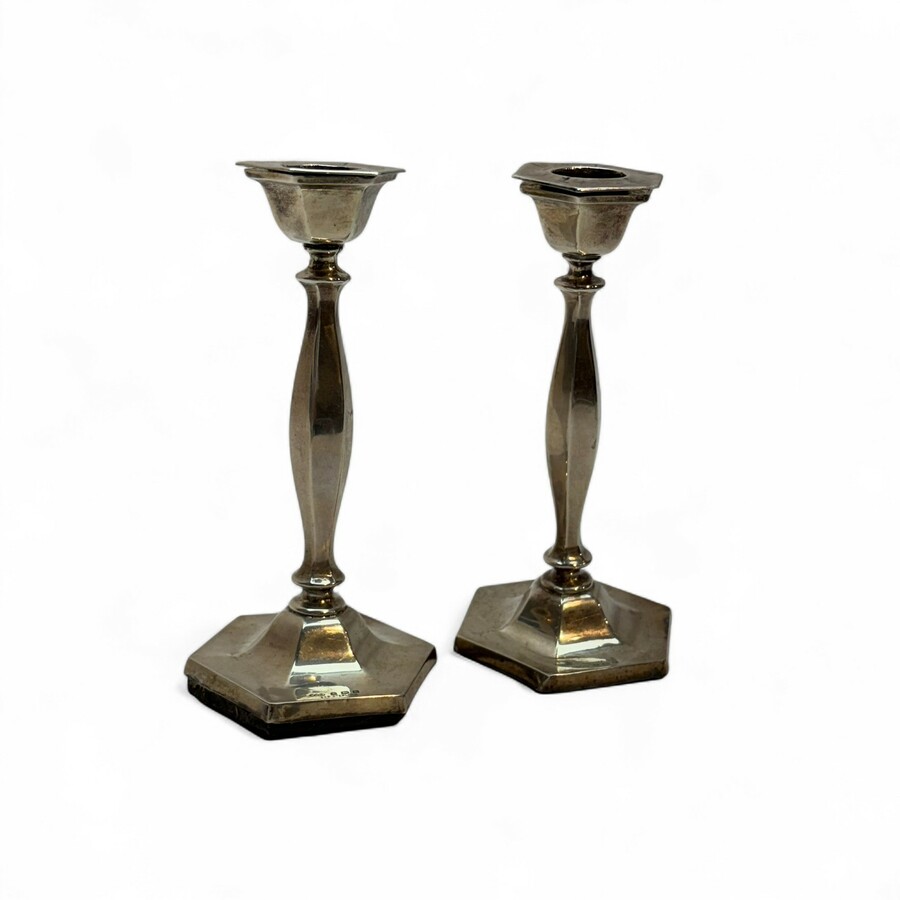 Twee zilveren kandelaaren
