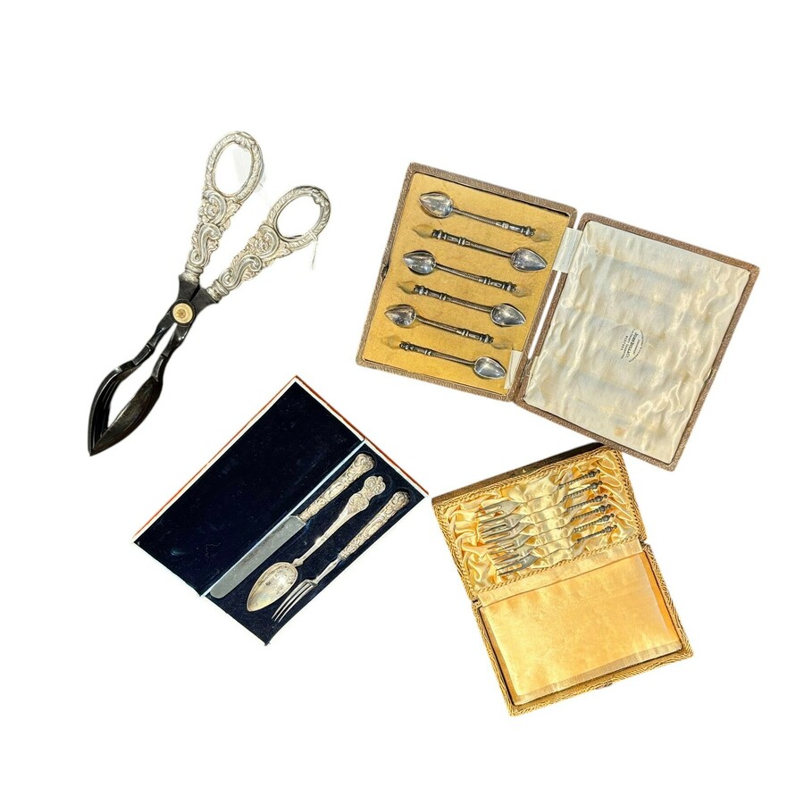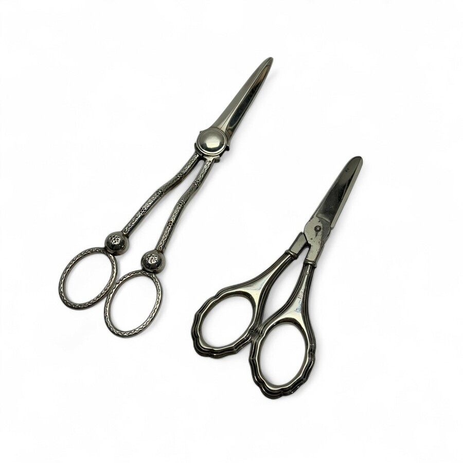 Twee druiven schaartjes, waarvan één met tweede gehalte zilver heften.