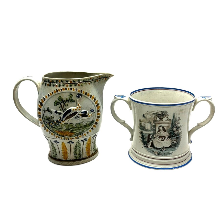 Engels aardewerk 'fopkruik' en schenkkan