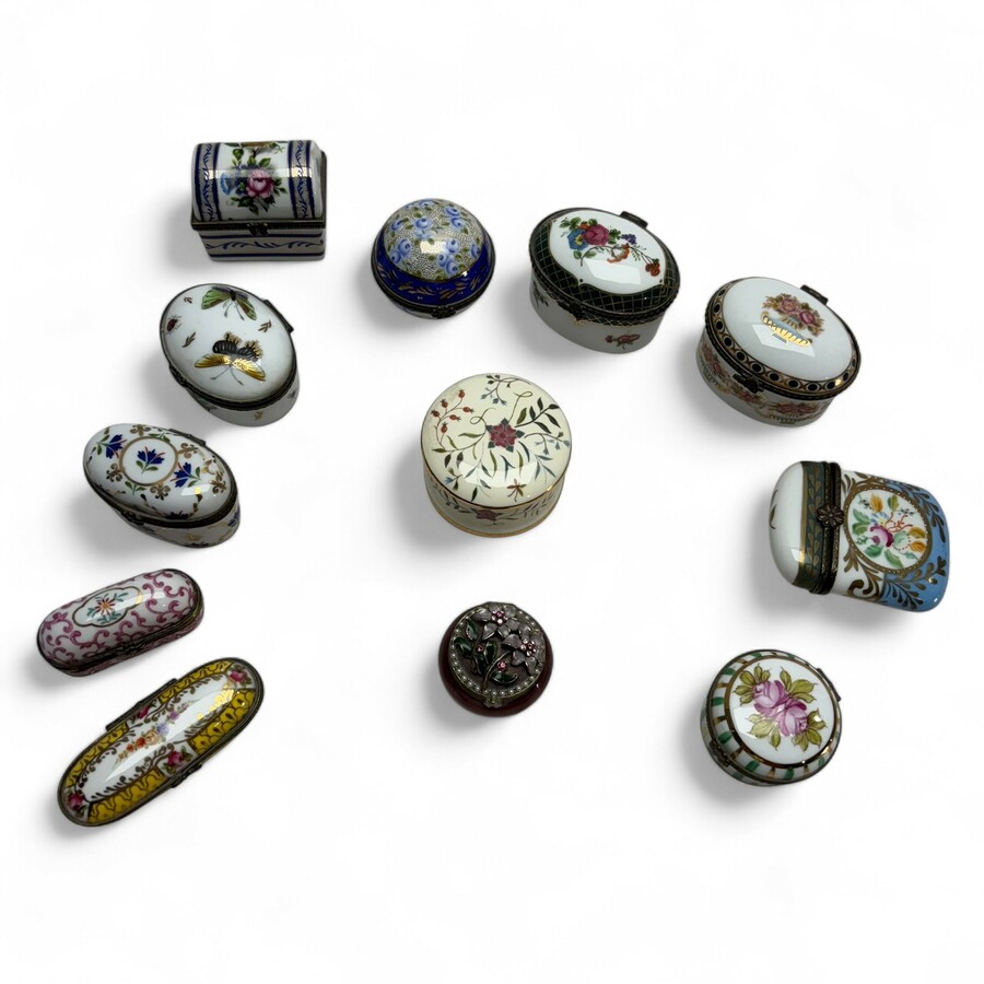 Twaalf porseleinen snuisterijendoosjes