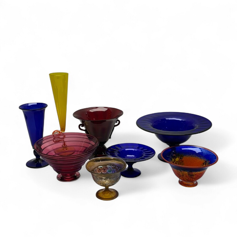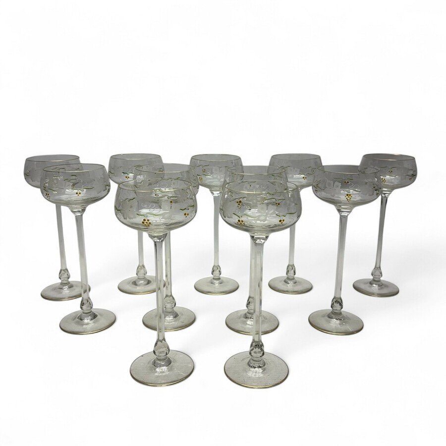 Elf geslepen en gegraveerde glazen uit ca 1900.