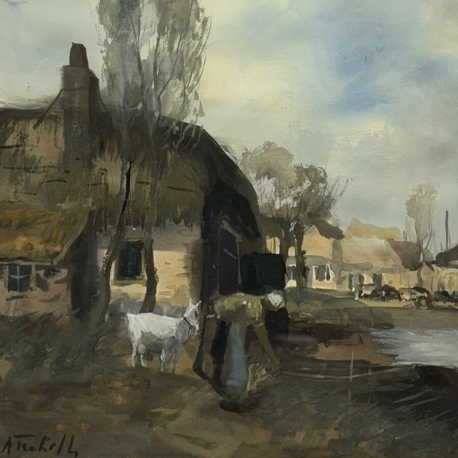 Johannes Mulders (1899-1989). Twee aquarellen en een houtsnede.