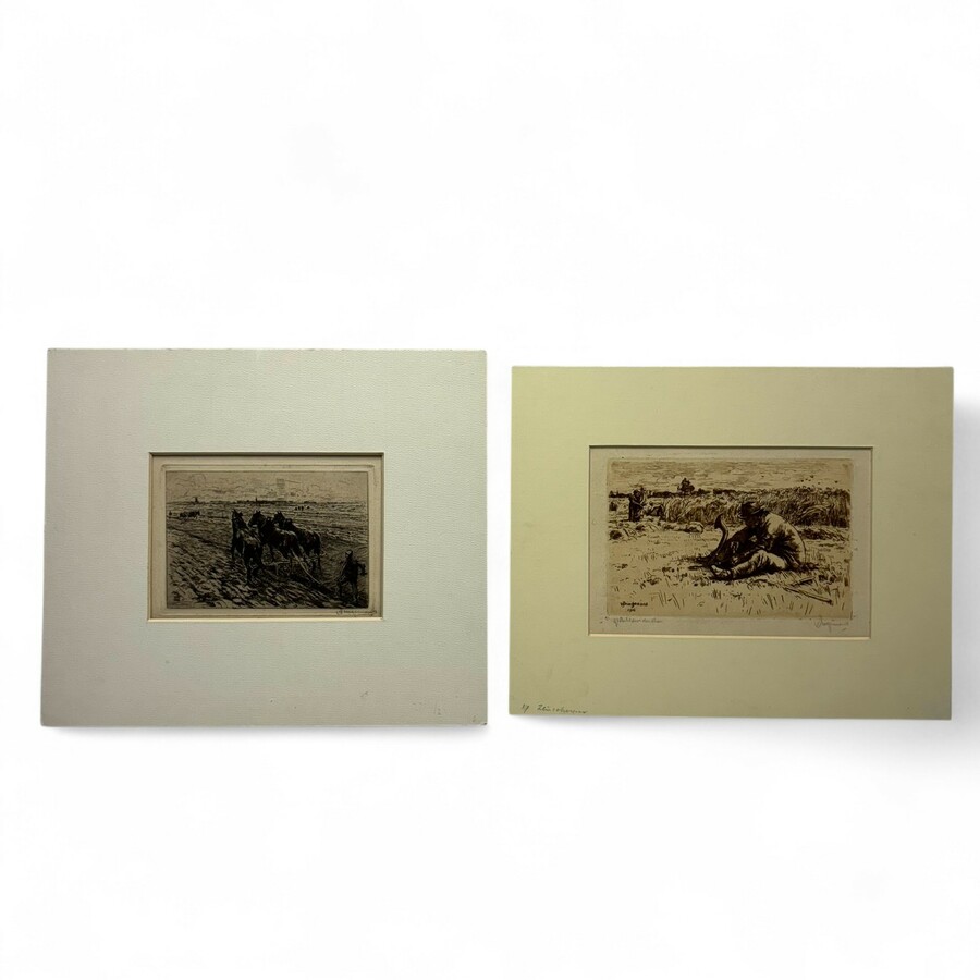 Waalko Jans Dingemans (1873-1925). Drie etsen van Landarbeiders en een molen.