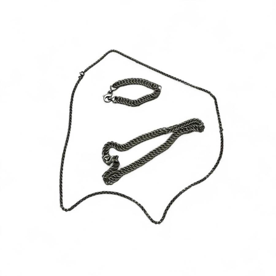 Zilveren ketting en armband, en zilveren jasseronschakelcollier