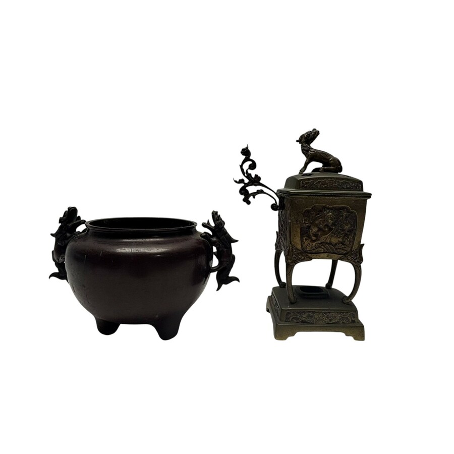 Twee Japans gepatineerde bronzen wierookvaten zgn Koro's.