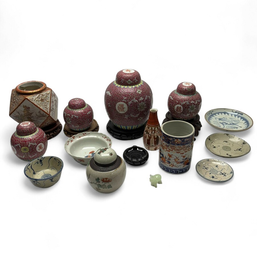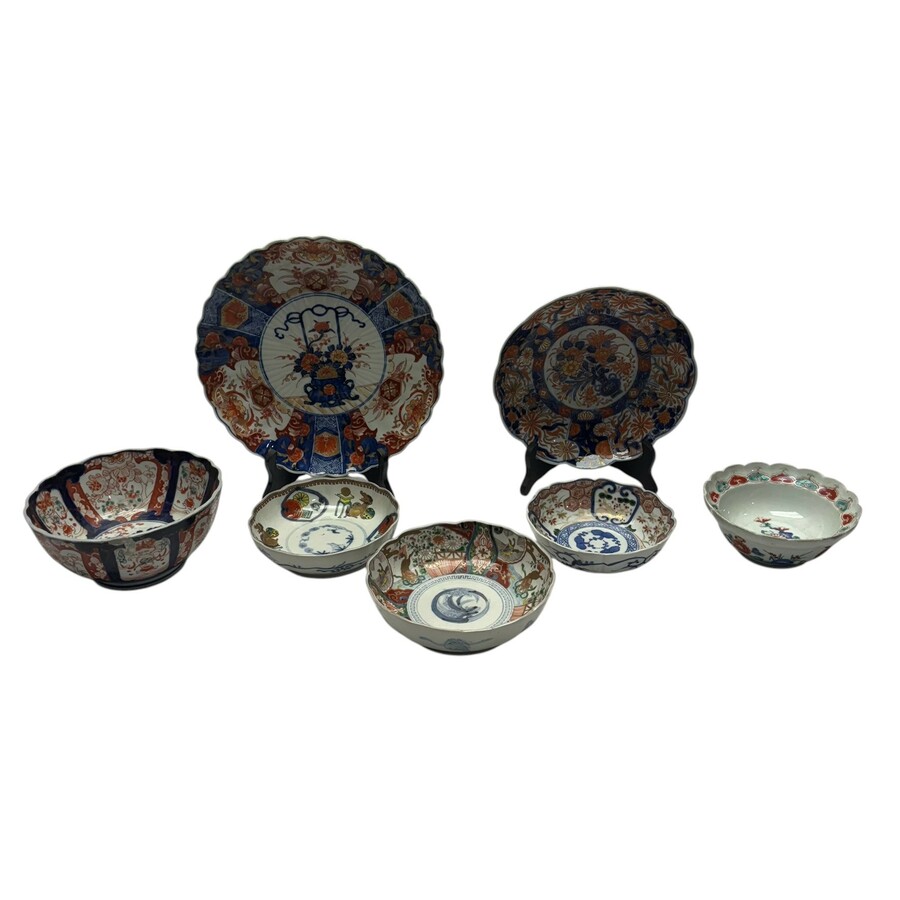 Lot van zeven antieke Japans porseleinen Imari schotels en kommen.