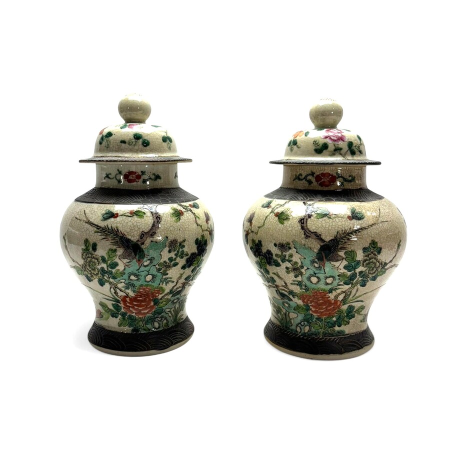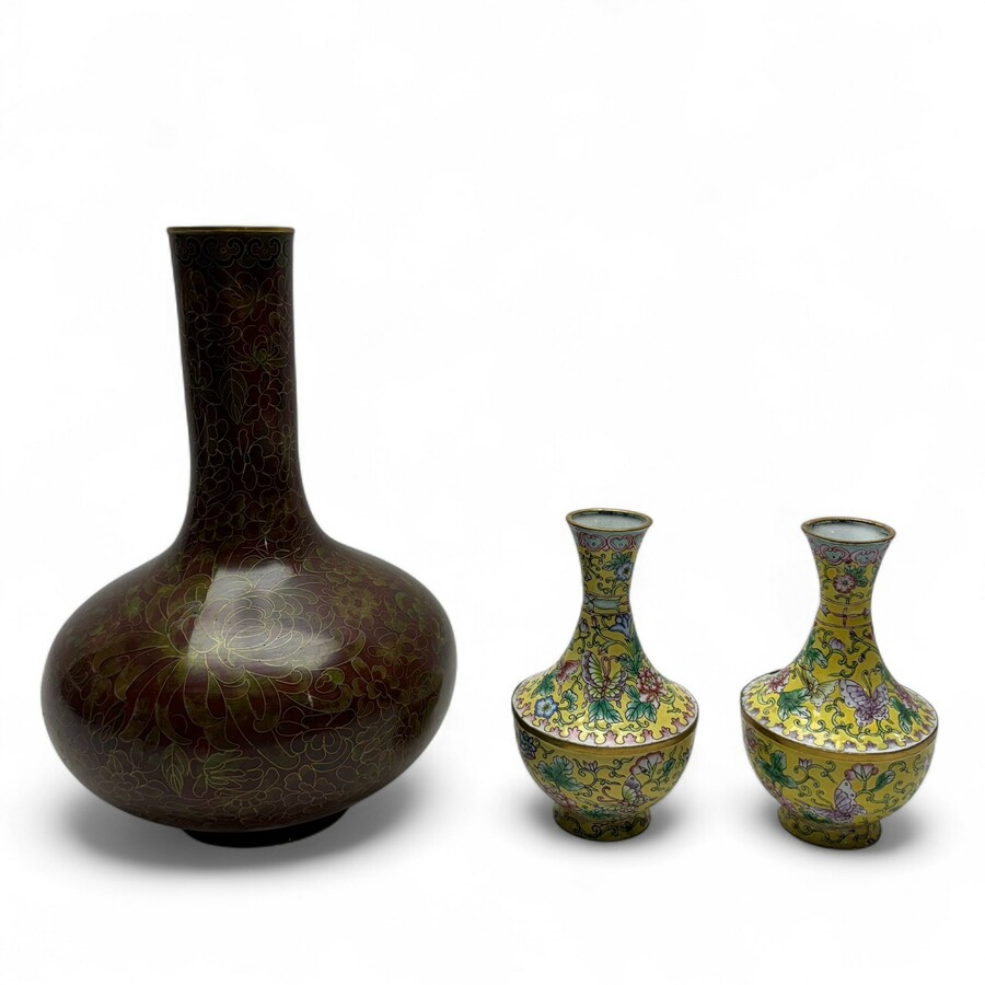 Chinese cloisonné vaas, en paar emaille vaasjes