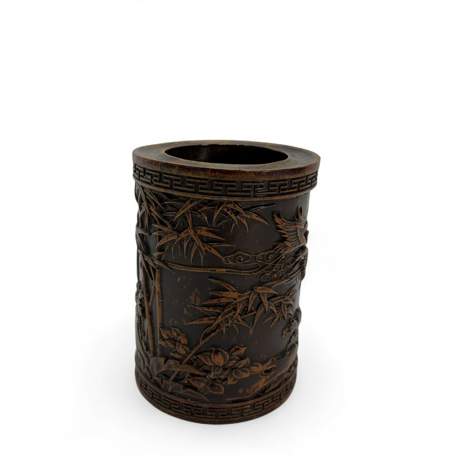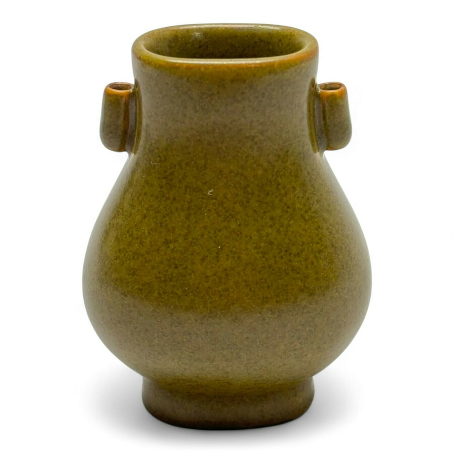 Een Chinees steengoed twee oren vaasje met thee glazuur.