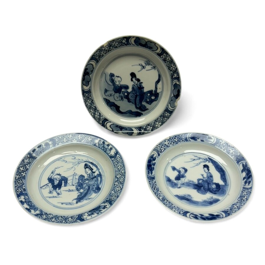 Drie Chinees porseleinen schoteltjes, 19e eeuw