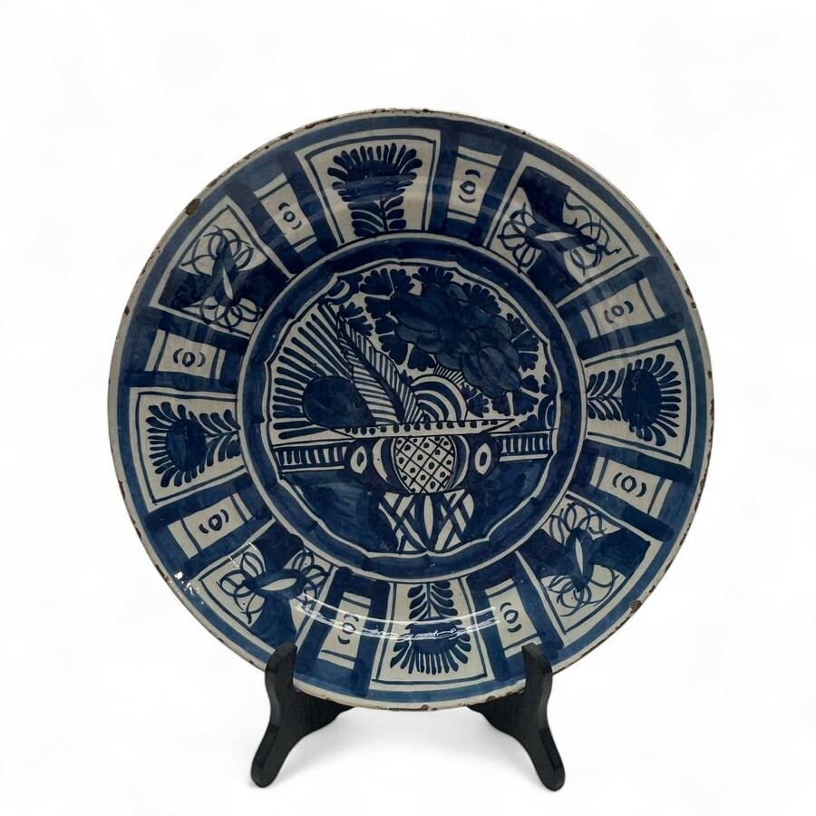 Een vroeg 18e eeuwse Delfts aardewerken schotel naar Wanli voorbeeld.