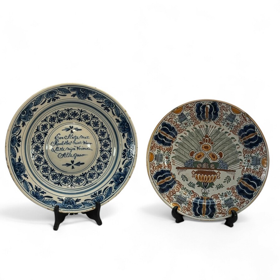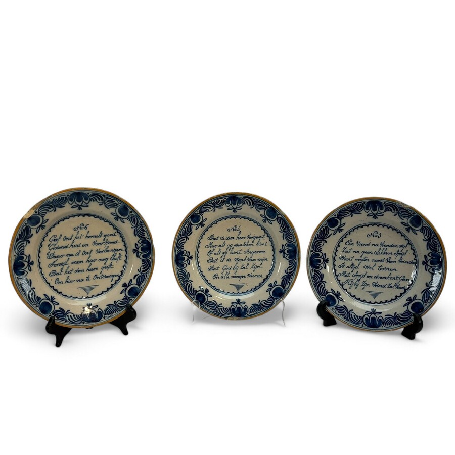Drie Delfts aardewerk spreukenborden, 18e eeuw