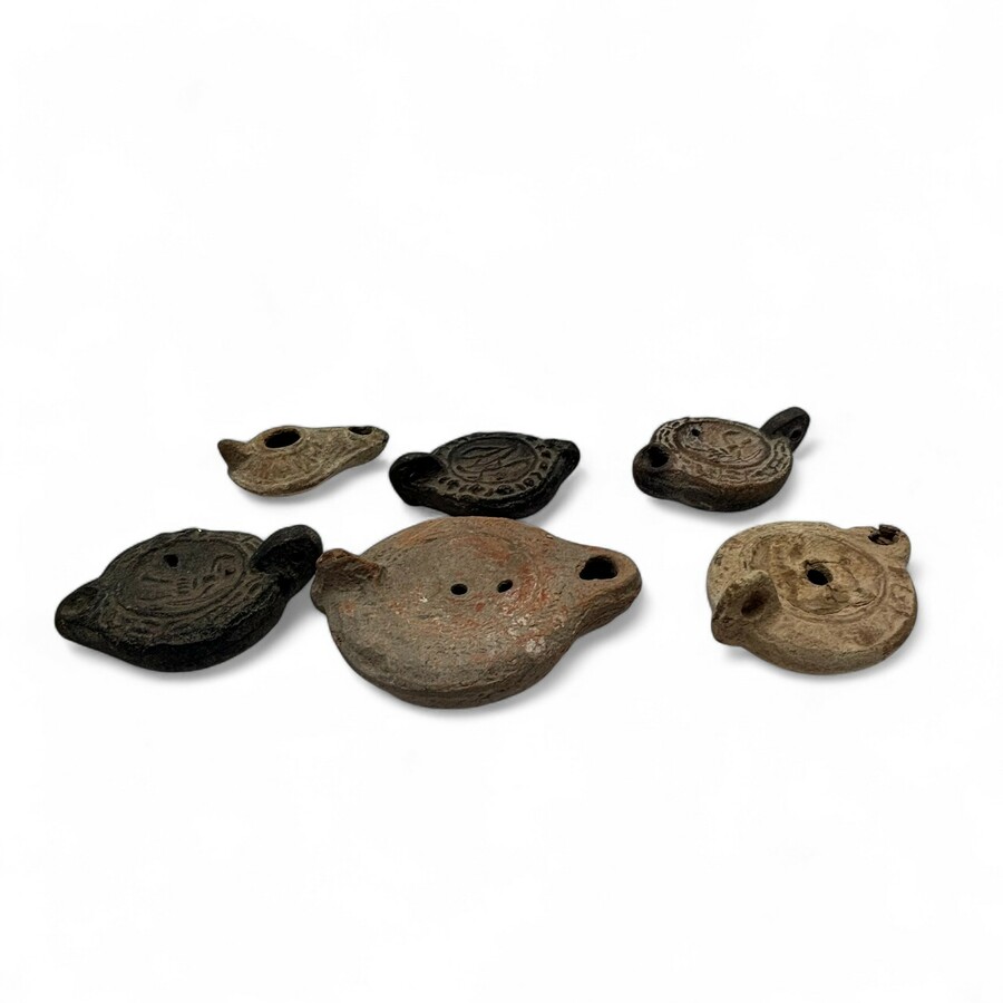 Zes antieke terracotta Griekse / Romeinse olielampjes.