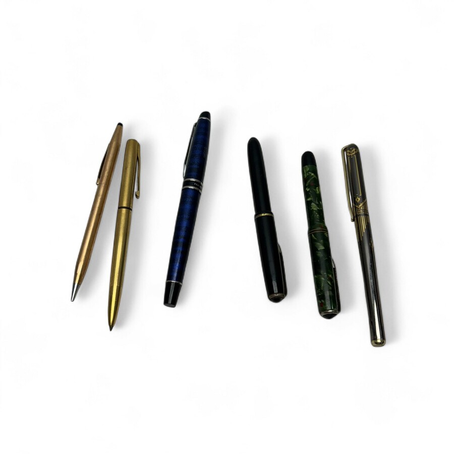 Diverse pennen en vulpennen, waaronder Waterman, Paris France.