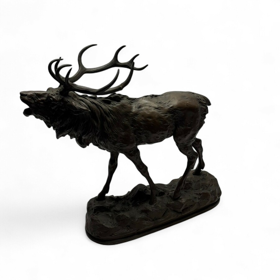 Gebronsd metalen beeld: brullend hertenbok